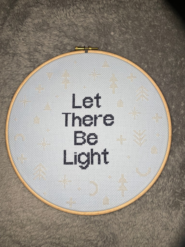 This pattern came from She Reads Truth in their Advent 2021 book. It’s stitched in a 12″ hoop and although I thought it’d be fairly quick since the pattern is quite sparse, it took ages because there was so much counting!
