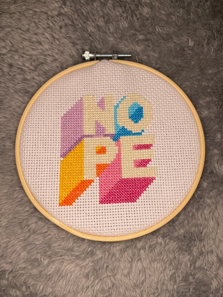 I love this pattern and the colours, but every time I look at it, it just annoys me that I messed up reading the pattern on the ‘O’ and it’s too wide on the left and too narrow on the right. No-one else probably notices it but it’s just all I can see!